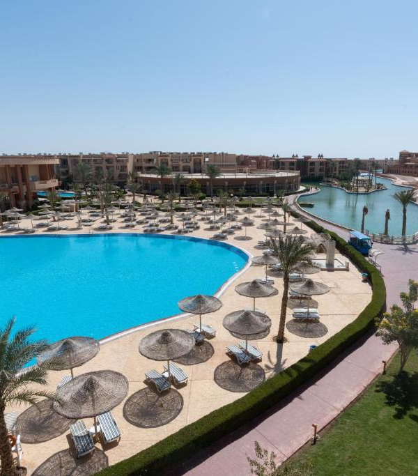 Parrotel Lagoon Waterpark Resort in Nabq Bay, Sharm El Sheikh, is a 4-star, family-friendly, all-inclusive resort featuring a large waterpark with slides, several pools, lagoons, a private beach with shuttle service, and various dining options. Accommodations include over 400 spacious rooms and suites with modern amenities, while the resort offers a wellness center, kids’ club, daily entertainment, and free WiFi in public areas.